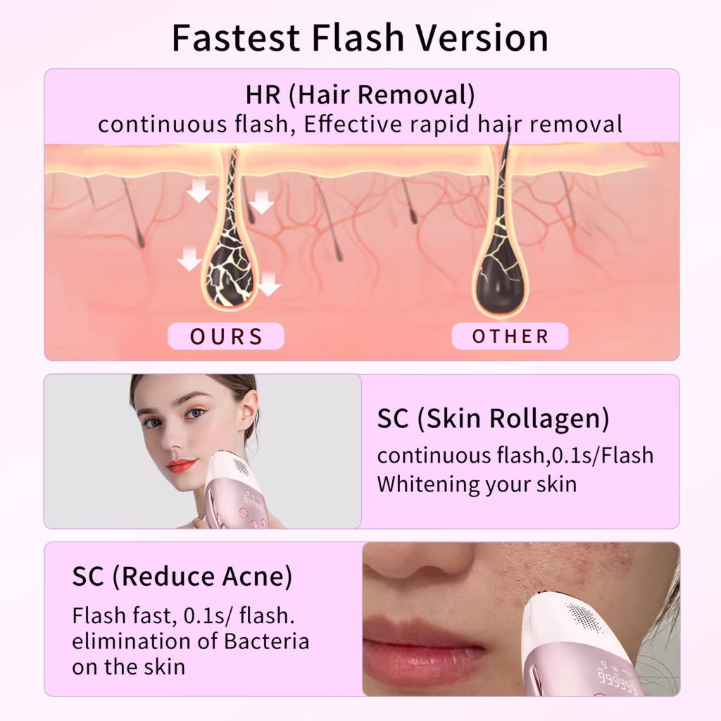 - দ্রুত ও কার্যকর: ০.৮ সেকেন্ডের ফ্ল্যাশ রেটের মাধ্যমে পুরো দেহ দ্রুত ট্রিট করা যায়।