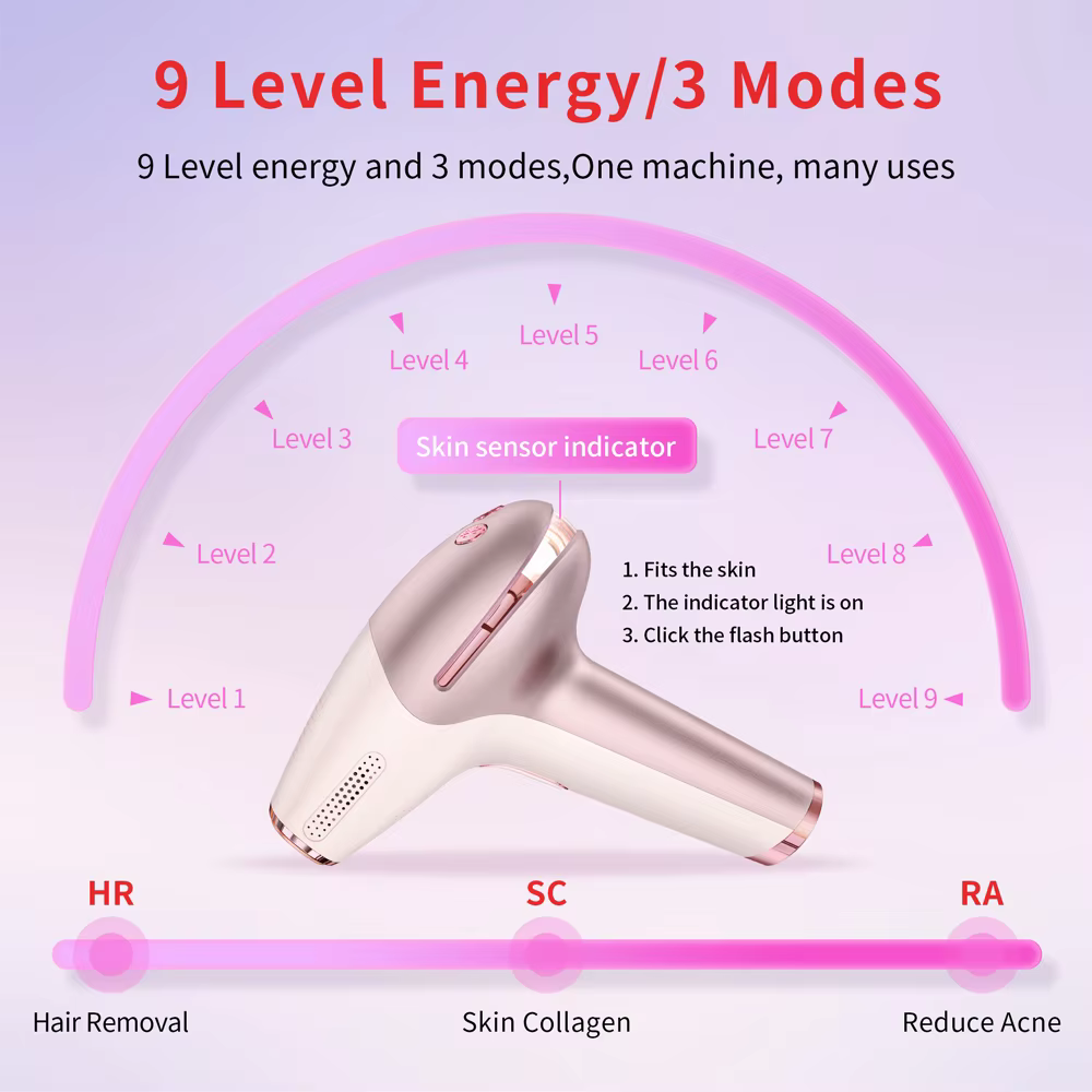 - ৯টি অ্যাডজাস্টেবল এনার্জি লেভেল: বিভিন্ন ত্বকের সংবেদনশীলতা ও দেহের অংশ অনুযায়ী তীব্রতা কাস্টমাইজ করুন—চেহারা থেকে পা পর্যন্ত।